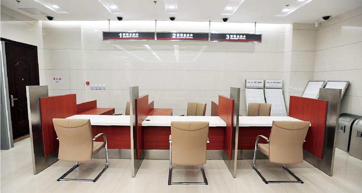 厚重大方的厚款屏风整齐的坐落在办公空间中。屏风强大的走线功能使外部没有一点走线,让办公更高效、快捷。灰白色钢板搭配中国红色的中线,和谐而不显突兀,营造出银行整体的“安全”感。